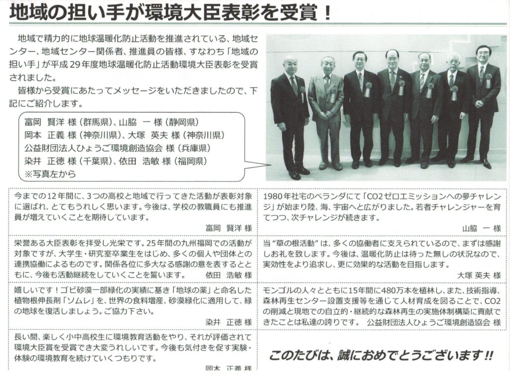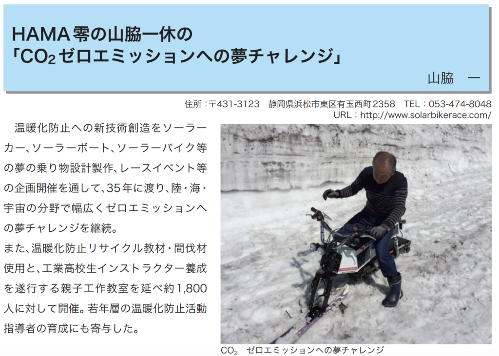 山脇一休が平成29年度地球温暖化防止活動環境大臣賞受賞 投稿日 2021年2月6日 著者 日本ソーラービークル協会 カテゴリー 受賞歴・メディア掲載 第20回 平成29年度環境大臣表彰の詳細はこちらから この記事を書いた人 日本ソーラービークル協会 記事一覧